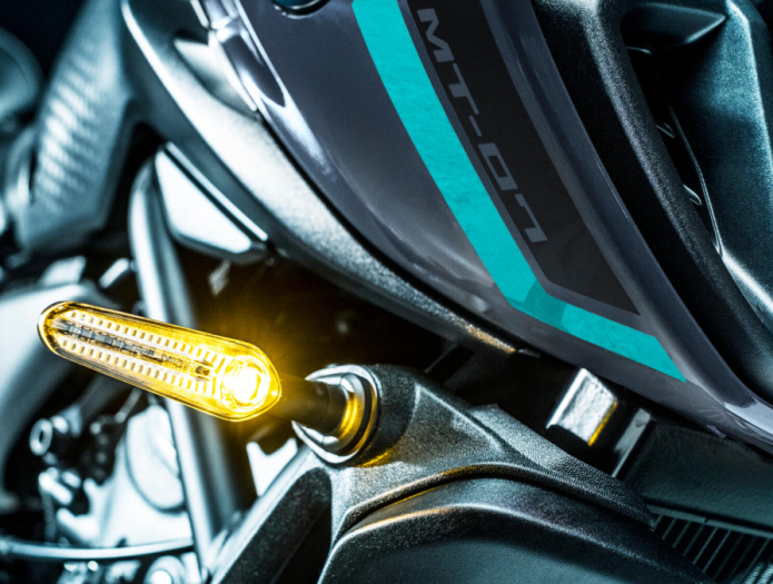 Uute juhtrauaga integreeritud lülititega saate kasutada laiemat valikut MT-07 funktsioone, sealhulgas nutitelefoni ühenduvust, navigeerimis- ja sõidurežiime ning uurida täiendavaid menüüvalikuid. Uued suunatuled on nüüd isekustuvad ja pakuvad reavahetuseks kolme vilgatuse funktsiooni. Uus on ka ohuhoiatussüsteem, mis tuvastab automaatselt hädapidurduse ja lülitab sisse märgutuled, et teavitada sellest automaatselt teisi liiklejaid.