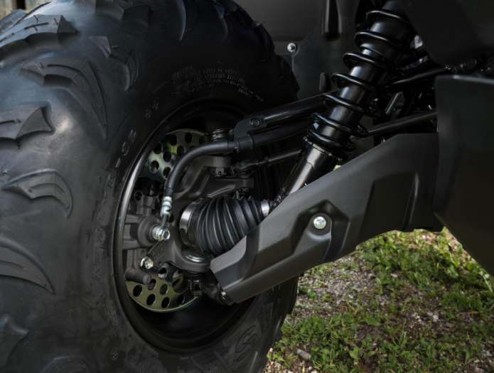 В независимой системе подвески Grizzly 700 EPS используются азотно-газовые амортизаторы, которые имеют регулируемую предварительную нагрузку, что позволяет водителю использовать различные настройки. Это также единственная модель в своем классе, оснащенная гидравлическими дисковыми тормозами всех четырех колес, обеспечивающими превосходное тормозное усилие.