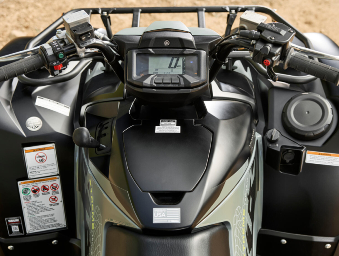 Многофункциональный цифровой дисплей Grizzly 700 EPS включает указатель уровня топлива, спидометр, одометр, счетчик моточасов, часы, предупреждение о блокировке полного привода/дифференциала, положение передачи и сигнальную лампу EPS. Есть три отдельных отсека для хранения, в которых достаточно места для инструментов или личных вещей.